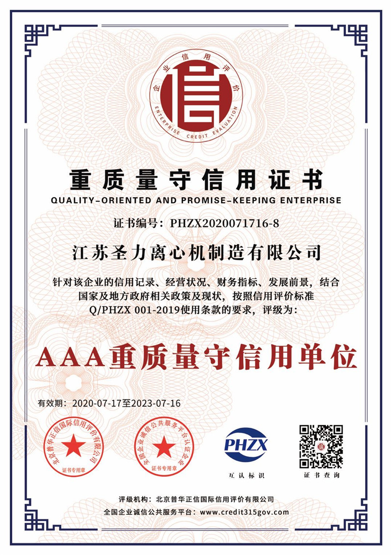 江蘇圣力離心機(jī)制造有限公司是國(guó)內(nèi)分離機(jī)械行業(yè)中主要的離心機(jī)生產(chǎn)企業(yè),對(duì)離心機(jī)的研究、設(shè)計(jì)、制造有多年的歷史,擁有齊全的設(shè)備、完善的檢測(cè)手段。公司已通過(guò)IS09000國(guó)際質(zhì)量體系認(rèn)證、ISO14001環(huán)境管理體系認(rèn)證、ISO45001:2018職業(yè)健康安全管理體系認(rèn)證和CE認(rèn)證,是江蘇省高新技術(shù)企業(yè),曾榮獲國(guó)家和地方多項(xiàng)榮譽(yù)稱(chēng)號(hào)。